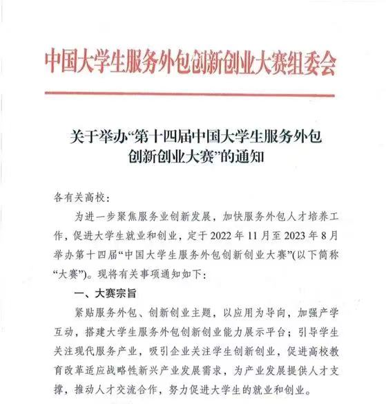 中国老员工服务外包创新创业大赛是由教育部、商务部联合主办的国家级A类赛事,是服务外包产业领域唯一的国家级赛事,自2010年举办至今累计吸引1600多所院校、近50万名老员工参赛,为服务外包产业输送了15万名创新人才。该赛事已列入中国高等教育学会发布的“全国高校学科竞赛排行榜评估体系”,成为评估全国高校创新创业人才培养质量的指标之一。