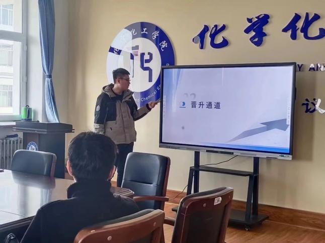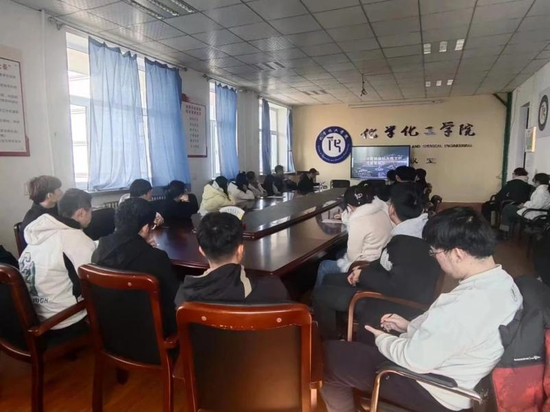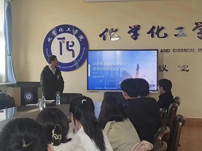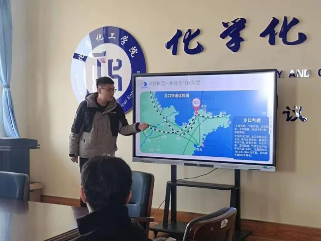 会议伊始,山东裕龙石化有限公司工艺经理陈万波为大家播放一段视频以初步介绍公司产业文化及发展,让同学们对该公司有一个初步的了解。