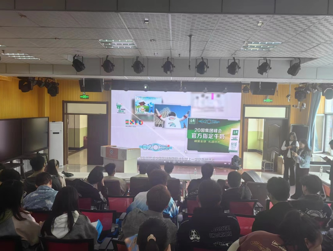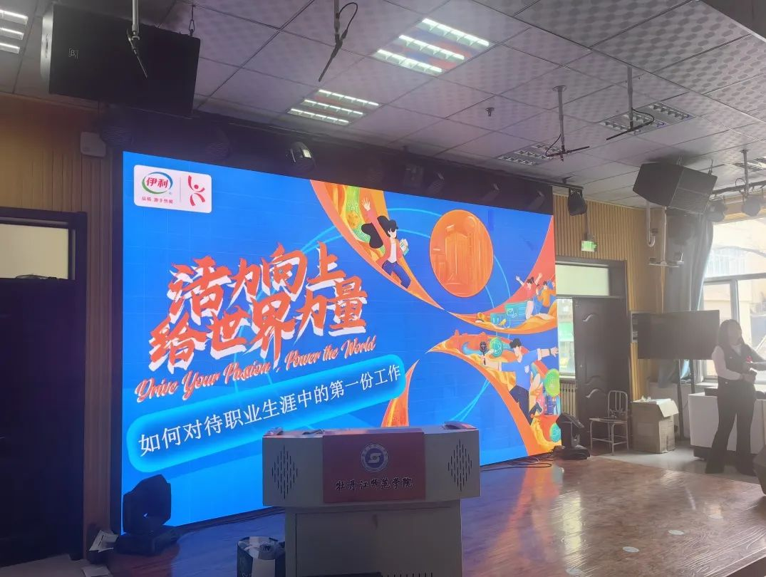 活动伊始,黑龙江伊利乳业有限责任公司的工作人员与同学们进行现场交流互动。他从五险一金、双节福利、健康体检、带薪年假、免费食宿、节日礼金等方面展开讲解,使同学们对企业有了全方位的认知。