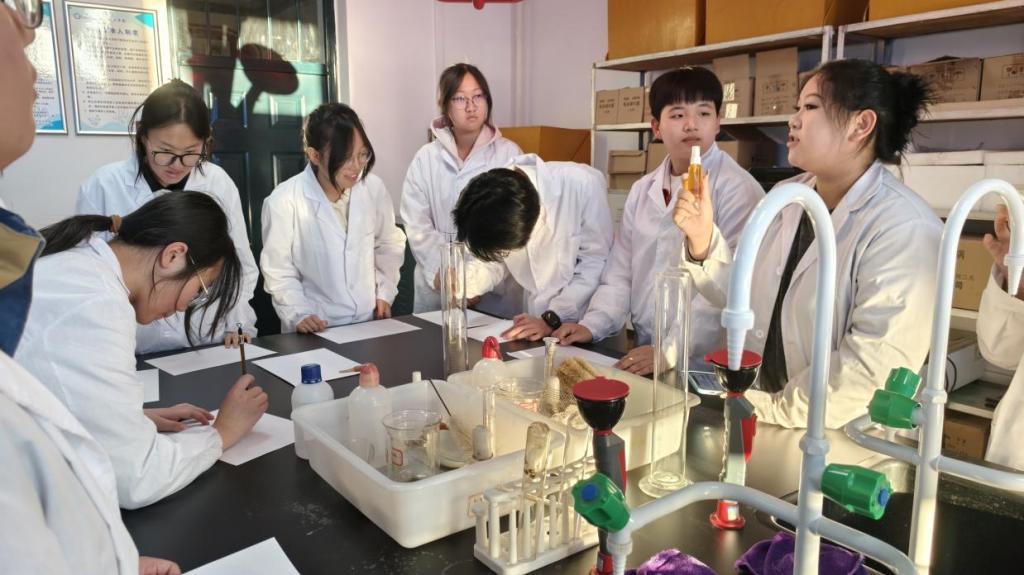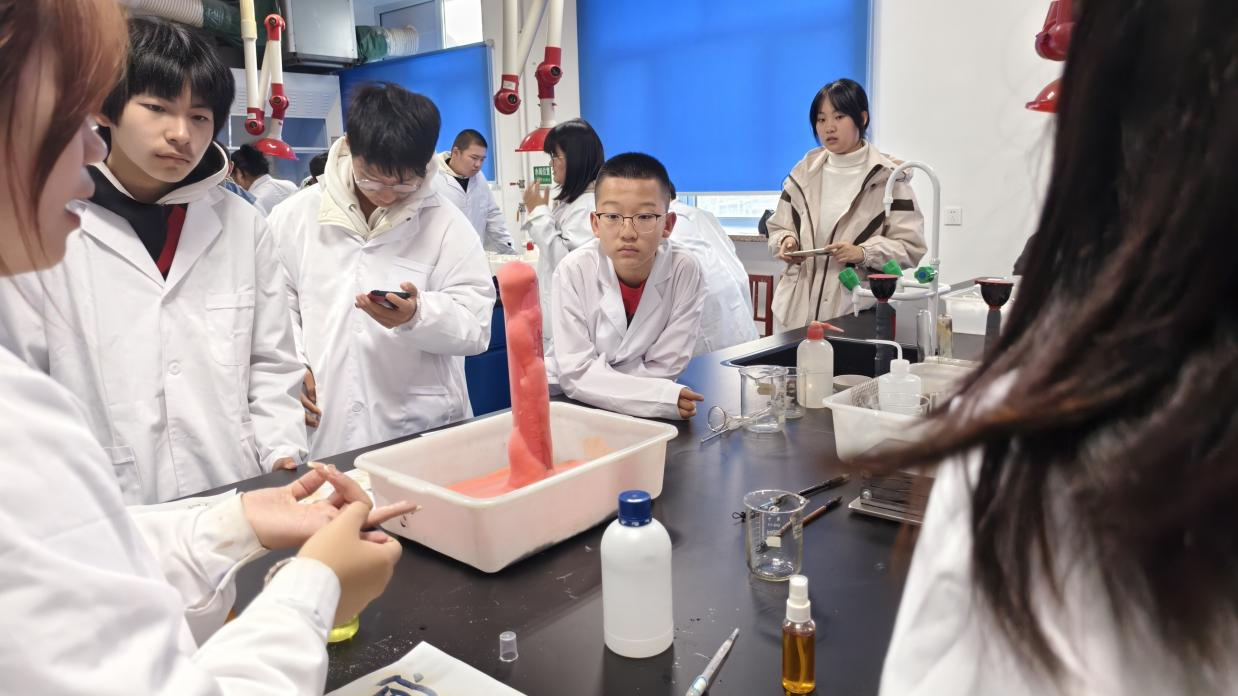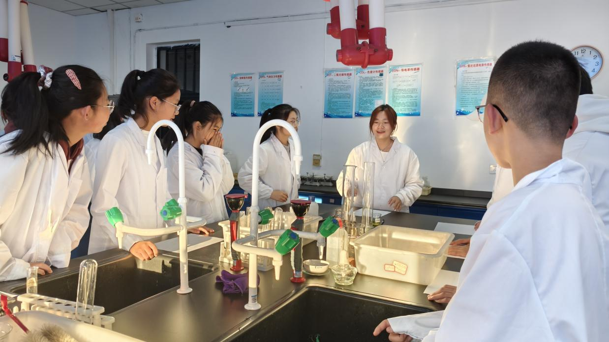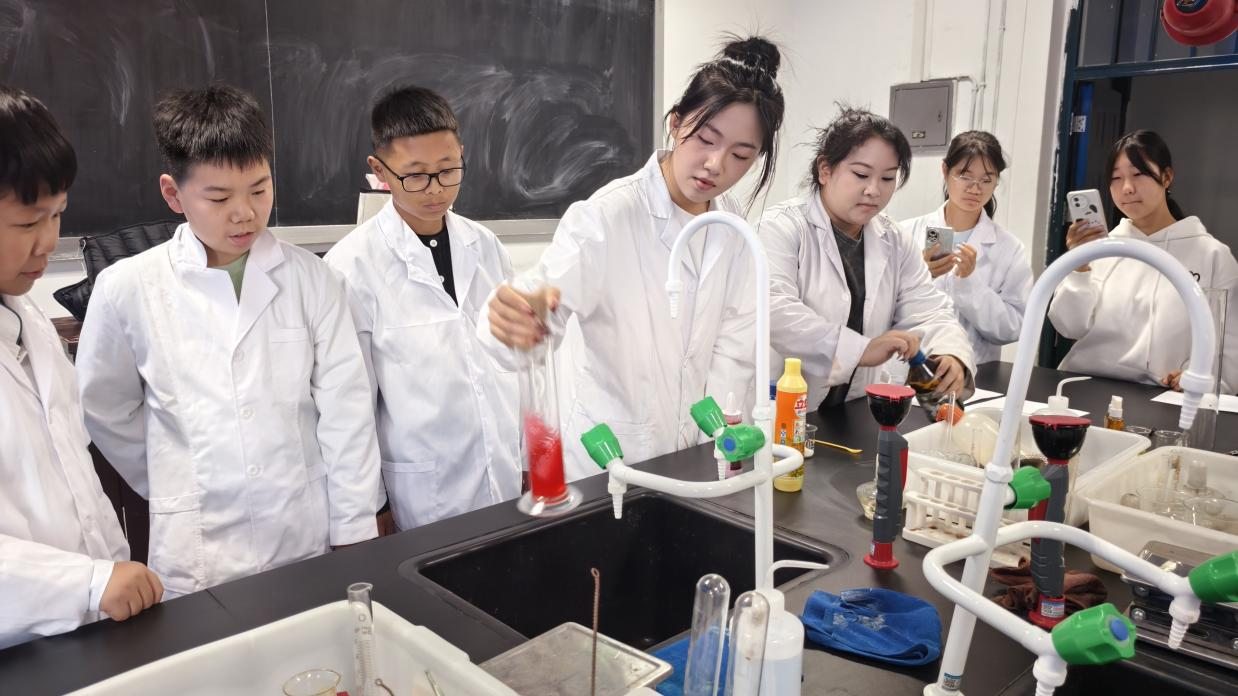 随后进入实验环节,由志愿者们带领同学们在理工楼实验室进行实验,通过亲身动手实践,体验科学的神奇与乐趣。从奇妙的化学反应到有趣的实验现象,每一个实验都让同学们沉浸在科学的世界中,他们通过动手操作,深切的感受科学的魅力,也培养了他们的实验能力和科学精神。