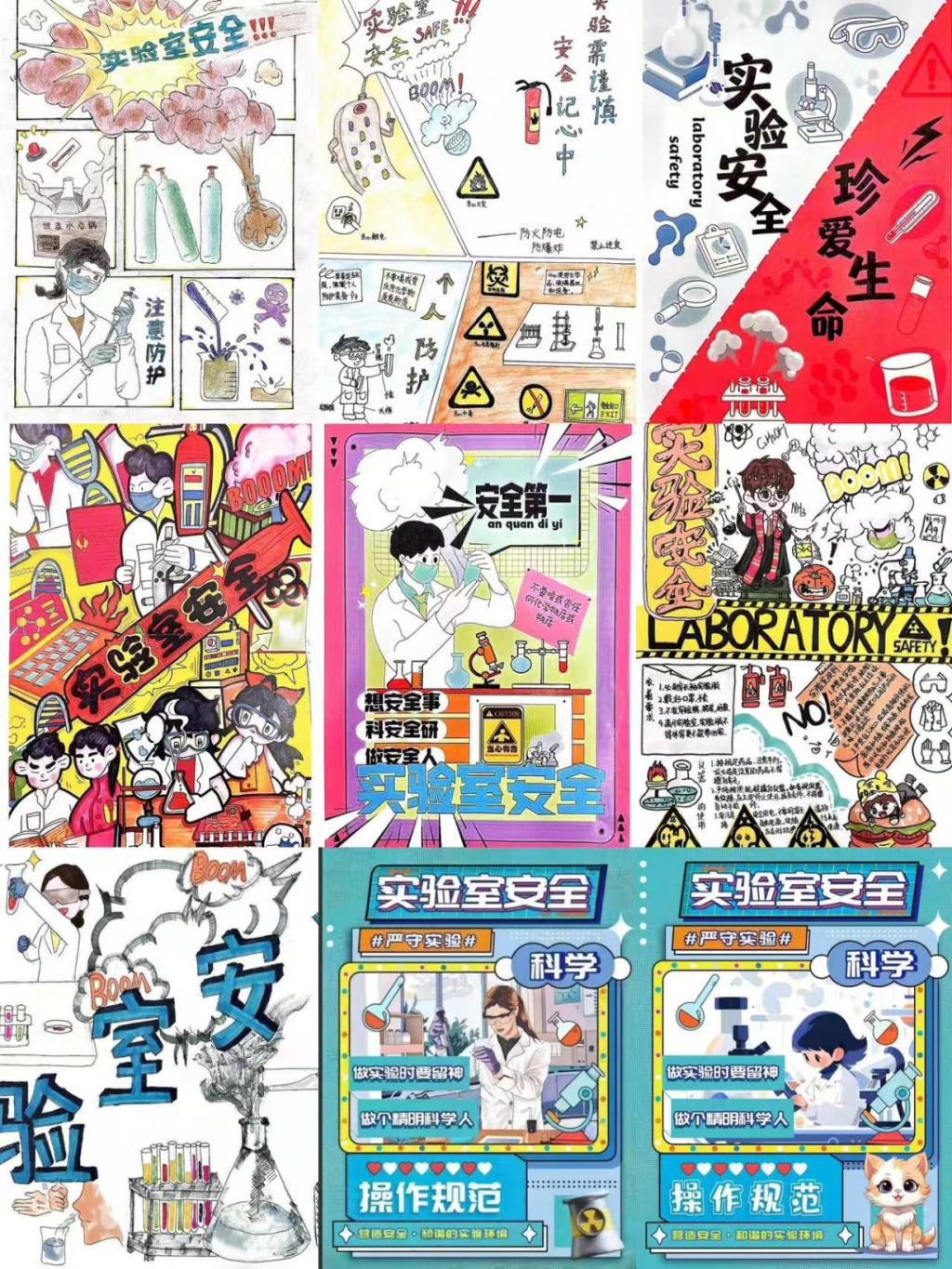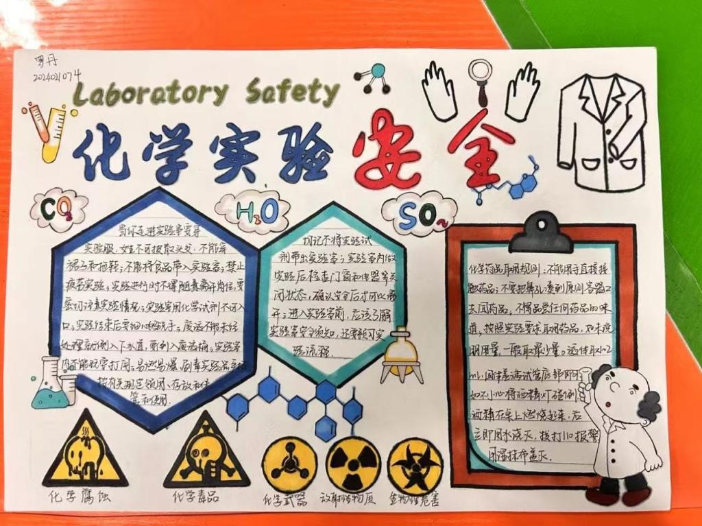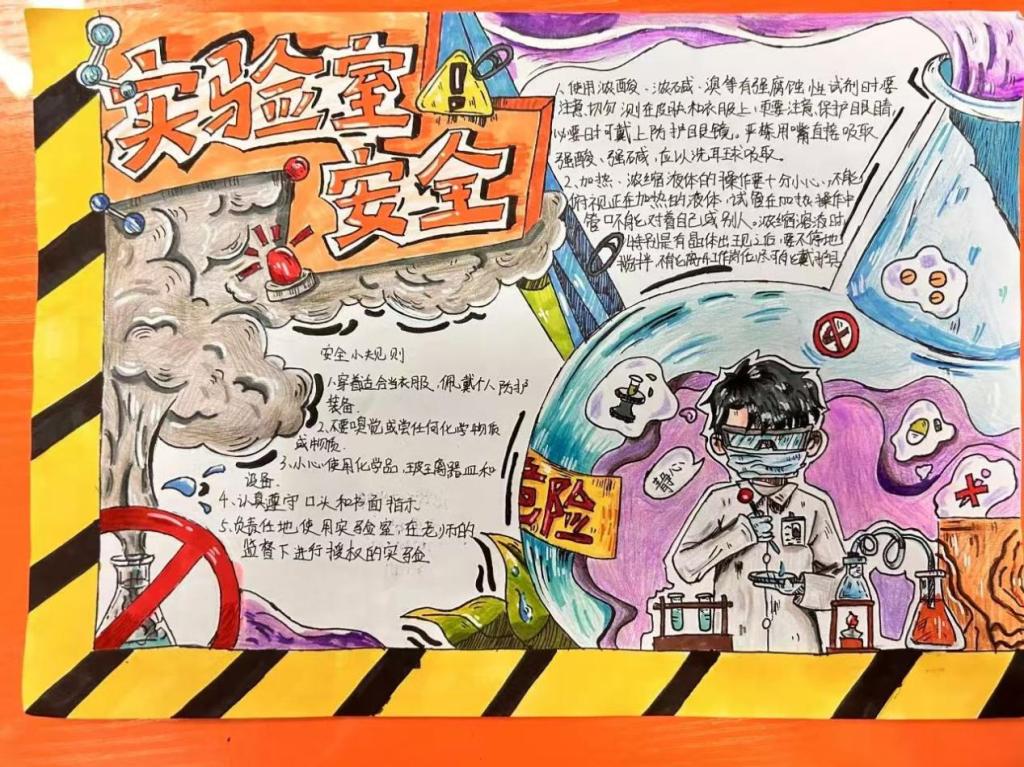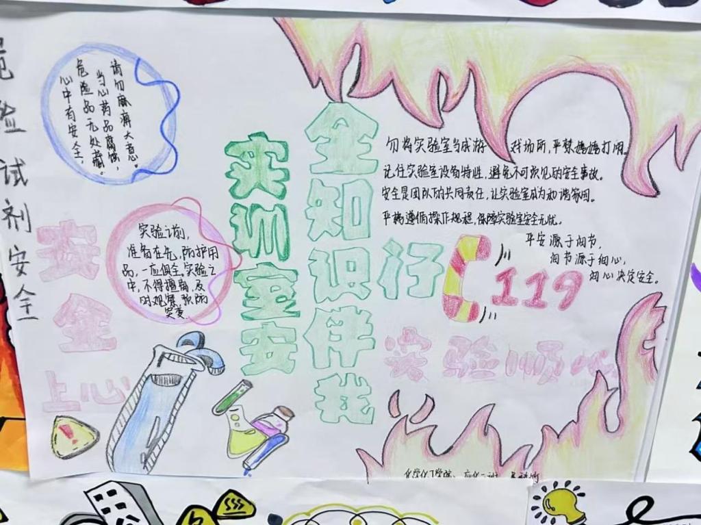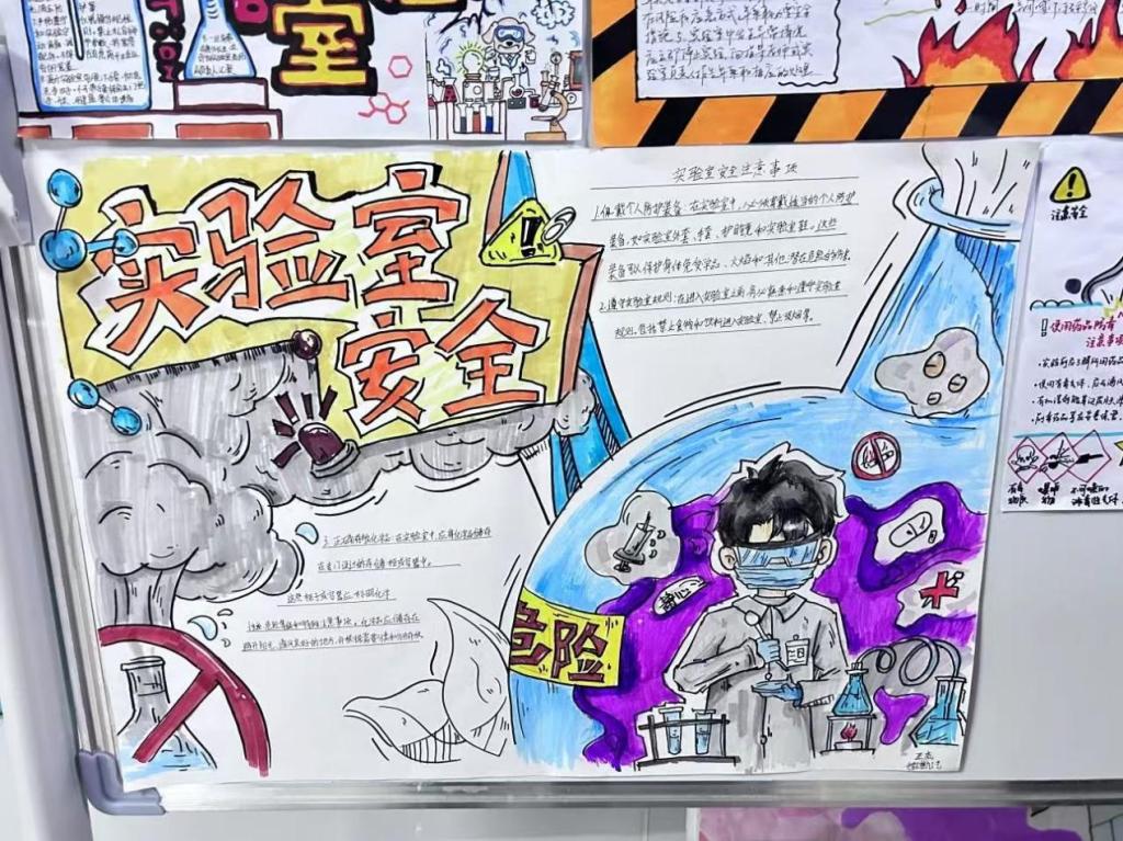 这些手抄报和海报各具特色,有的以生动的画面展示了实验室安全的注意事项,有的则用严谨的文字阐述了实验室安全的关键要点。每一幅作品都凝聚着同学们对实验室安全的重视和用心。
